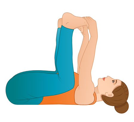 Heida pikali ja hinga sisse. Väljahingates too põlved rinnale ja võta kaissu. Hinga uuesti sisse ja tunneta oma keha. Järgmisel väljahingamisel tõsta jalalabad lae suunas, haara kätega jalalabadest (või säärtest, kui varbad on veel kaugel) ning lase põlvedel vajuda keha külgedele. Pahkluud peaksid olema põlvede kohal ja reied maaga paralleelselt. Jätka sügavat nina kaudu hingamist ja lase käte raskusel oma jalgu allapoole tõmmata, et tunneksid venitust puusades ja alaseljas. Proovi hoida alaselg maas või võimalikult maa lähedal. Hoia joogaasendit minut aega ja tule siis asendist rahulikult välja ning võta mõned sekundid aega, et selili puhata.
